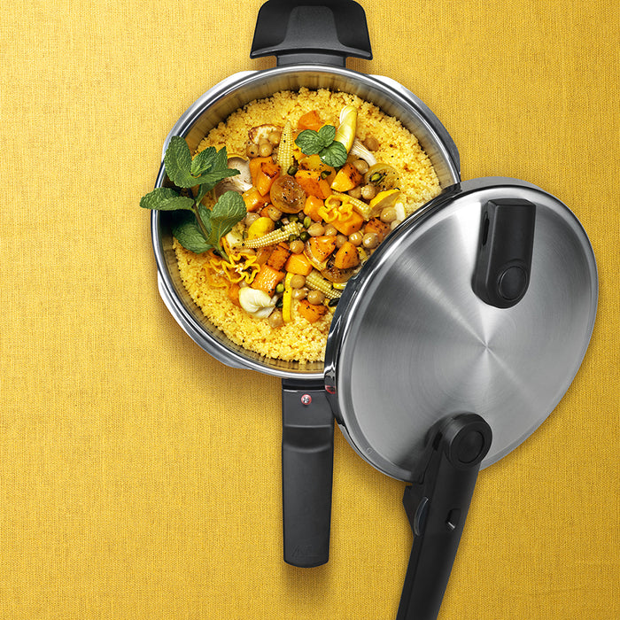 The Fissler Vitaquick® Premium offers everything you need to enter the world of healthy and tasty pressure cooking - "Made in Germany". Like all Fissler pressure cookers, the Vitaquick® reduces cooking time by up to 70% compared to a conventional cooking pot, saves up to 50% energy, preserves vitamins and retains flavors. Two cooking levels allow vegetables, pulses, fish or meat to be cooked particularly gently or very quickly. Sustainably manufactured in Hoppstädten-Weiersbach, Rheinland-Pfalz from up to 90% recycled 18/10 stainless steel, discover the world of pressure cooking safely and easily with the Vitaquick® Premium.