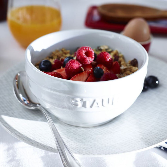 The elegance and functionality of STAUB ceramics goes from freezer to oven to table. The glass porcelain finish matches all STAUB cast iron to mix perfectly at the table. Oven and broiler safe up to 572°F, ceramics can also be used in the microwave and are dishwasher safe, as well as highly scratch, impact, and thermal shock resistant.