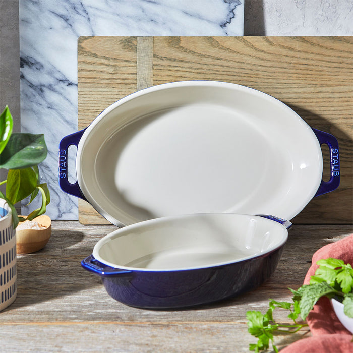 Staub Ceramic 2 Pc Oval Baking Dish Set in Dark Blue