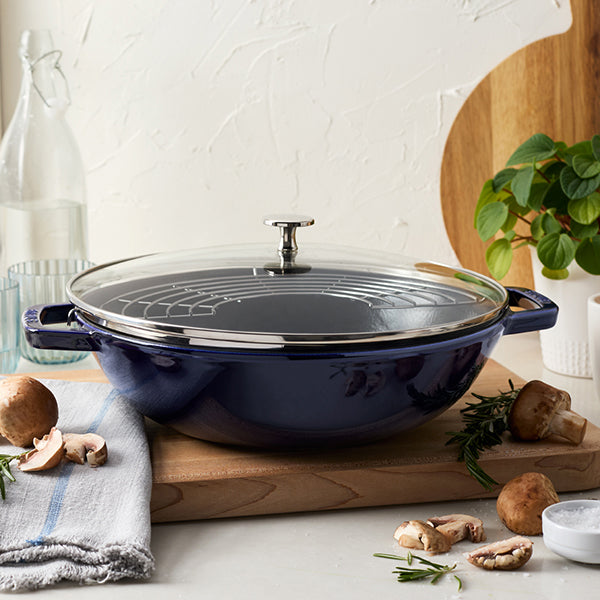Your new multitasking must-have is here. Toss together a quick stir-fry or braise a one-pot meal thanks to the roomy, versatile shape. And with the stainless-steel rack, you can do even more like steam, smoke, and deep fry and drain.