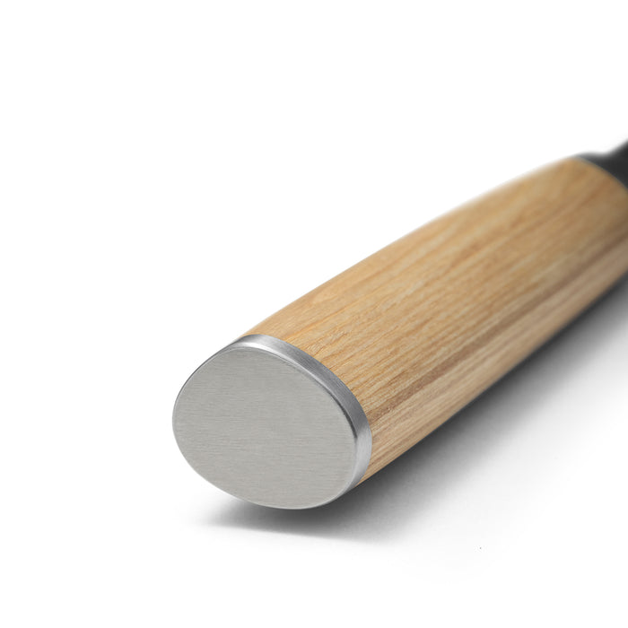 - D-shaped blonde Pakkawood handles are comfortable for both left- and right-handed users; durable, beautiful, and won't harbor bacteria