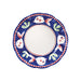 The colorful blue and red Campagna Pesce Salad Plate features whimsical handpainted fish swimming among green algae.