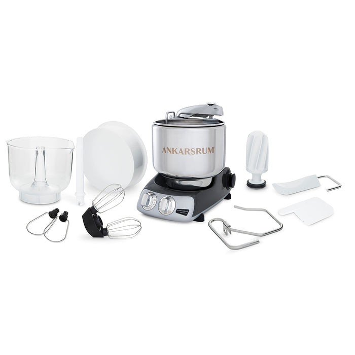 Mix and knead your bread dough, cookie dough, cake batter and just about any other baked good, with the Ankarsrum Original stand mixer. This one of a kind mixer features a stainless steel bowl and carbon steel base with a High Gloss finish in Black Chrome. The Assistent Original is produced and assembled by hand in Sweden and has been since 1940. Each Assistent is tested before it leaves the factory.