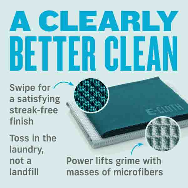 Waffle-weave microfibers remove grime and 99% of bacteria.