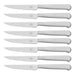 This set contains eight 4.5-inch steak knives packaged in an attractive black presentation box that is perfect for gift giving as well as storage. Precision-forged from a single piece of stainless steel, these strong blades boast long-lasting sharpness. From porterhouse to tri-tip, these durable knives effortlessly slice through even the thickest cuts of meat.