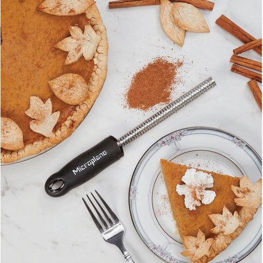 This slender tool makes fast work of grating a whole nutmeg, creating fresh ground spice. Grate a little nutmeg or cinnamon over your coffee. Add fresh nut sprinkles to desserts or ice cream. Delicious!