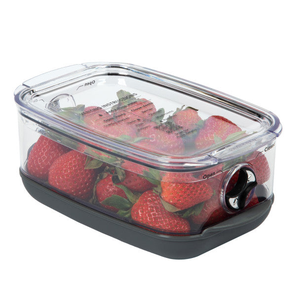 Fresh berries are very delicate and can be difficult to store. With the 1.2 qt berry produce keeper, you can store fresh strawberries, raspberries and other small fruits.The air-flow vents keeps produce fresh longer.