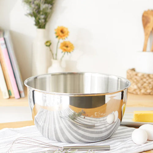 This 12 Quart Mixing Bowl from RSVP is a must-have in every kitchen. Made from heavy gauge 18/8 stainless steel with a mirror finish exterior, extra deep interior, and wide, stable base perfect for mixing or serving. Dishwasher safe. 12 qt. capacity.