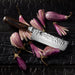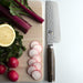 The Shun Premier Nakiri is part of the beautiful Shun Premier line, which calls to mind the hand-forged knives of ancient Japan. While each knife still takes at least 100 handcrafted steps to complete, the materials Shun uses are among the most advanced in the industry. Each blade has a cutting core of Shun's proprietary VG-MAX super steel to take and hold a precision edge. The layered Damascus cladding supports the core and provides additional stain resistance. Near the edge of the blade, where the steels meet, an undulating line is formedsimilar to the hamon formed when samurai swords are tempered using a traditional clay-baking technique. The hammered tsuchime finish acts like a series of hollow-ground cavities to reduce drag. The handles nestle comfortably in the hand, while the embossed end cap adds balance and beauty.