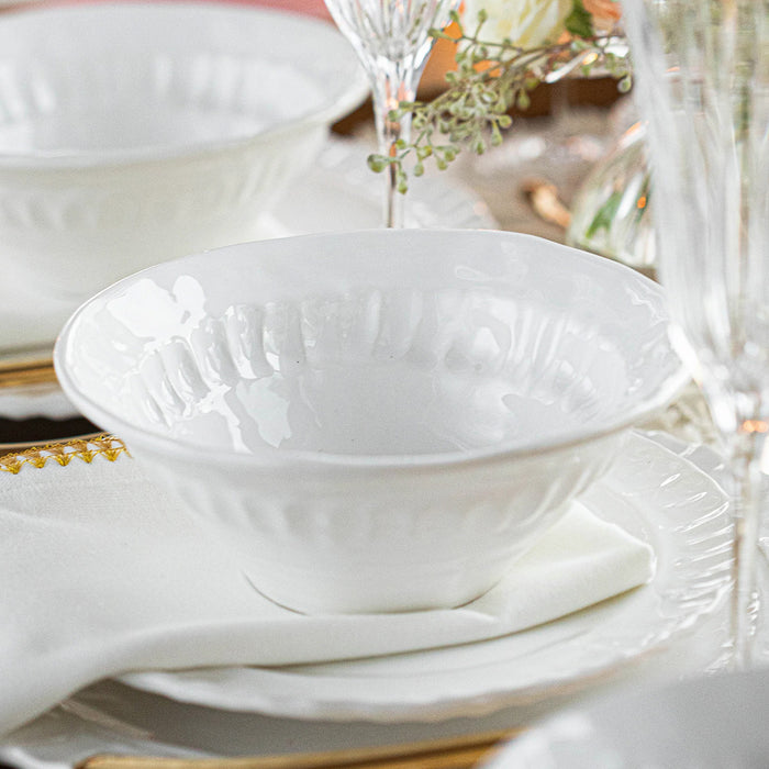 Pietra Serena, meaning serene stone, represents the simplistic beauty of the handpressed design found on the Pietra Serena Cereal Bowl.